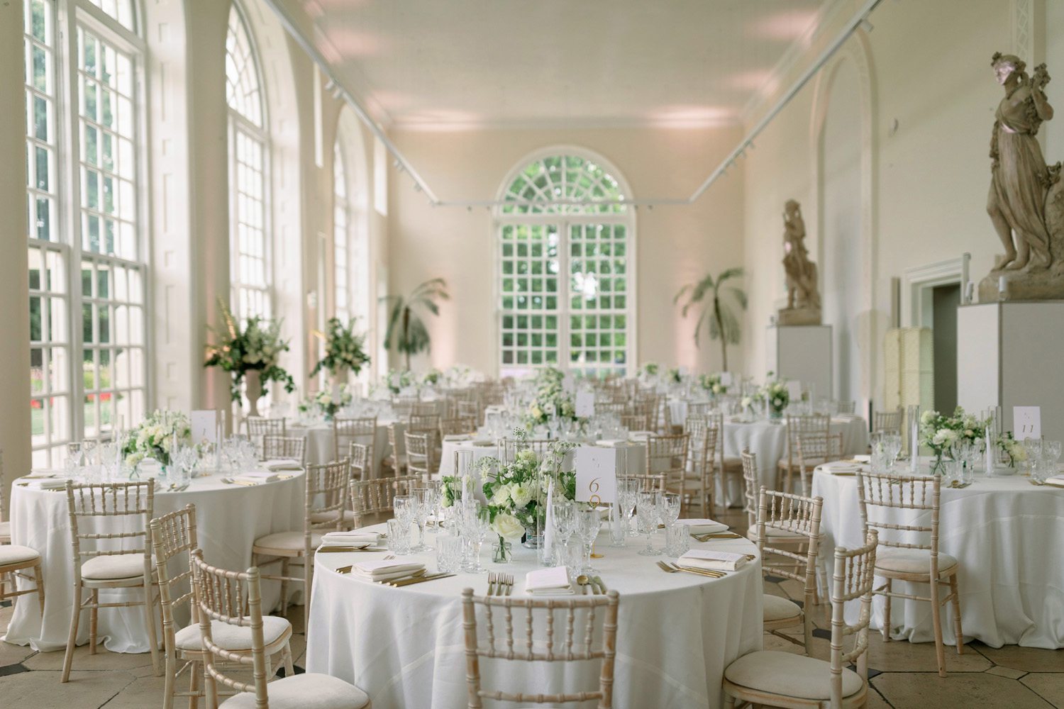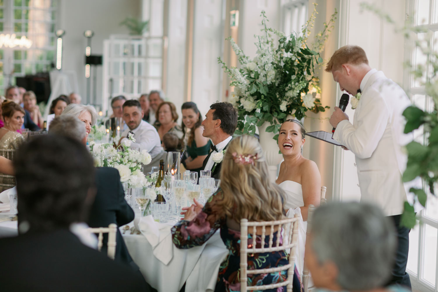 The Nash Conservatory was the chosen space for the ceremony and the stunning Orangery was used for the reception and dancing. Luckily the weather was kind to us and we used the lawns for the cocktail hour and some of the speeches took place outside. A growing trend is to split the speeches with early ones happening during the drinks outside. This creates a lovely relaxed feel for the speeches but also brings people together in that warm collective way that only speeches can achieve.
