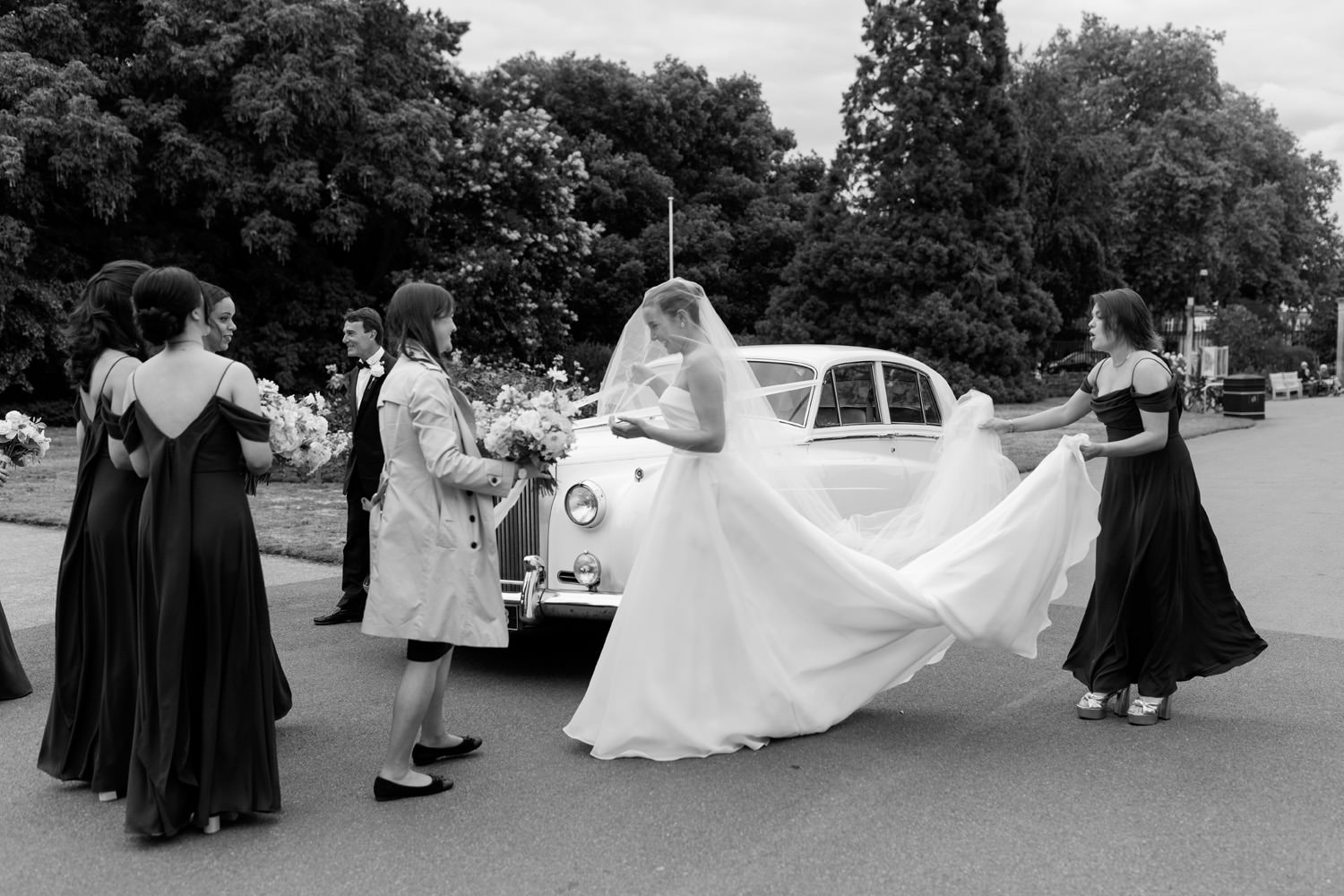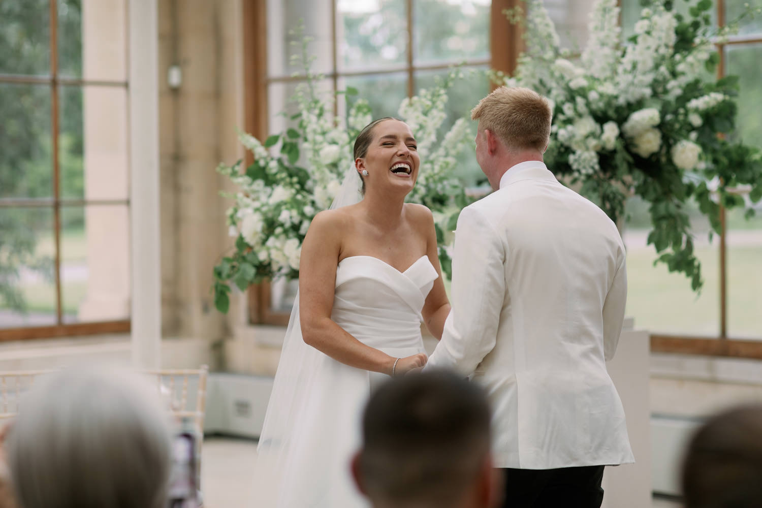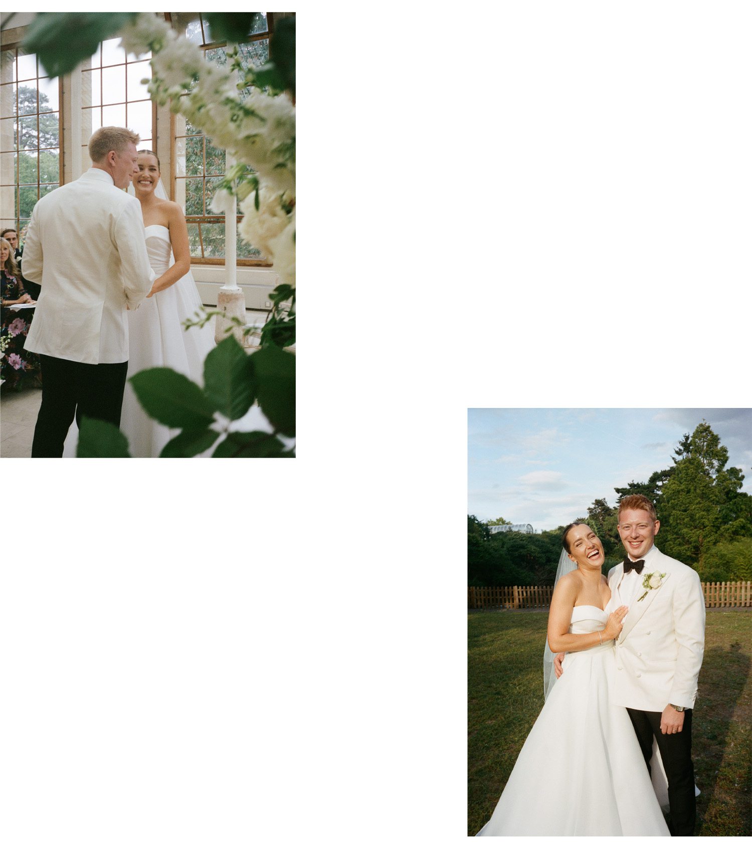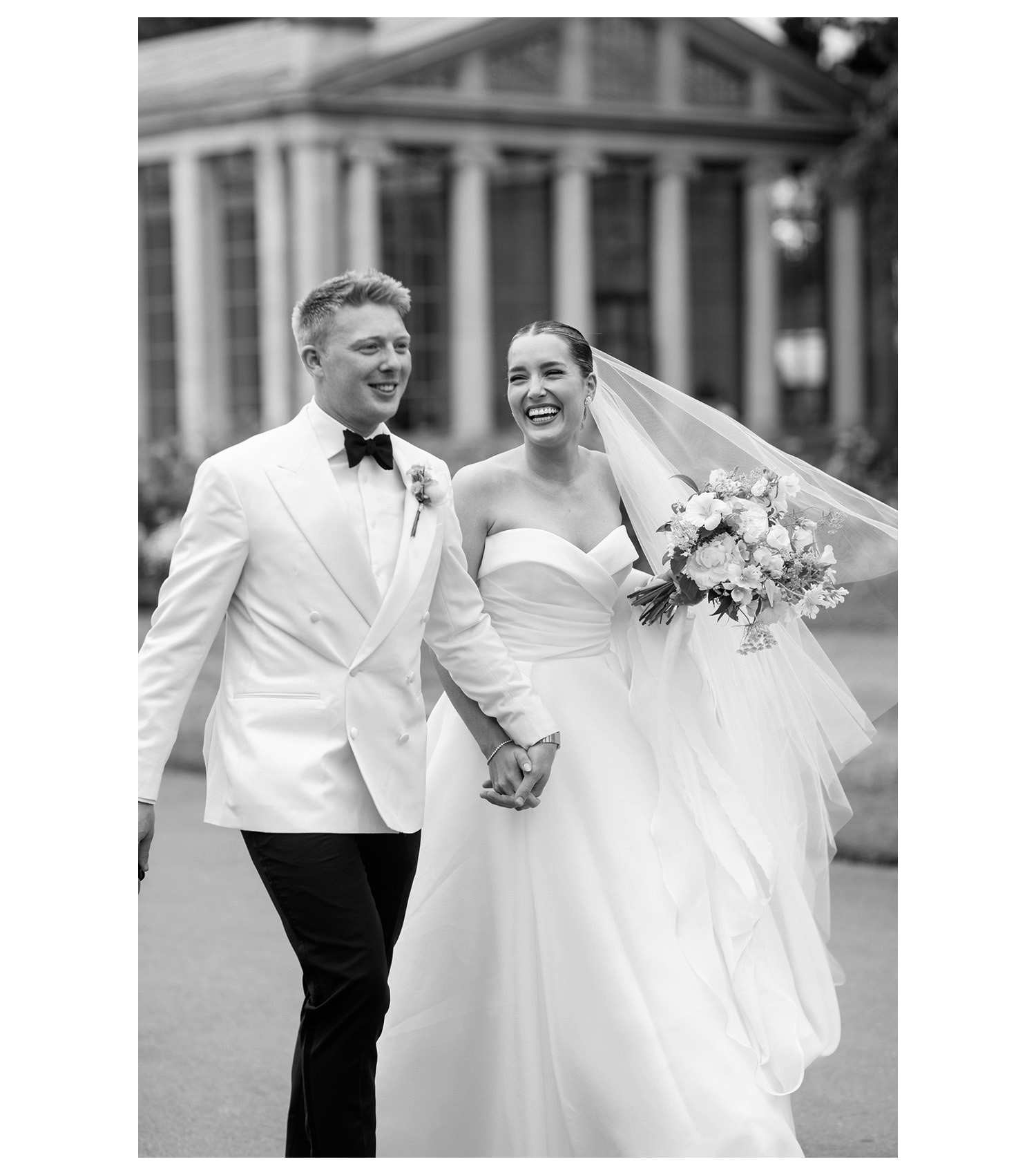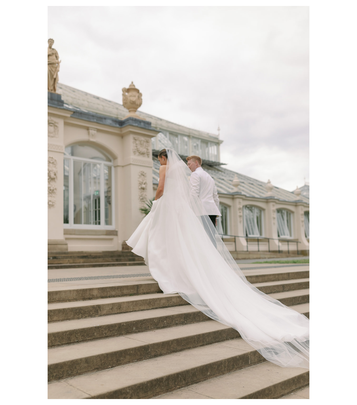 This was a stunning day in London at the iconic Kew Gardens. I don’t think Kim stopped smiling pretty much all day. James wore a classy white jacket. The florals were classic green and white from Blue Sky Flowers. We had the luxury of being driven around the ground to take some portraits in other venues within the garden grounds. In particular Temperate House one of the world’s most famous glasshouses with beautiful palms forming the backdrop for the wedding portraits as well at the exterior glass also.