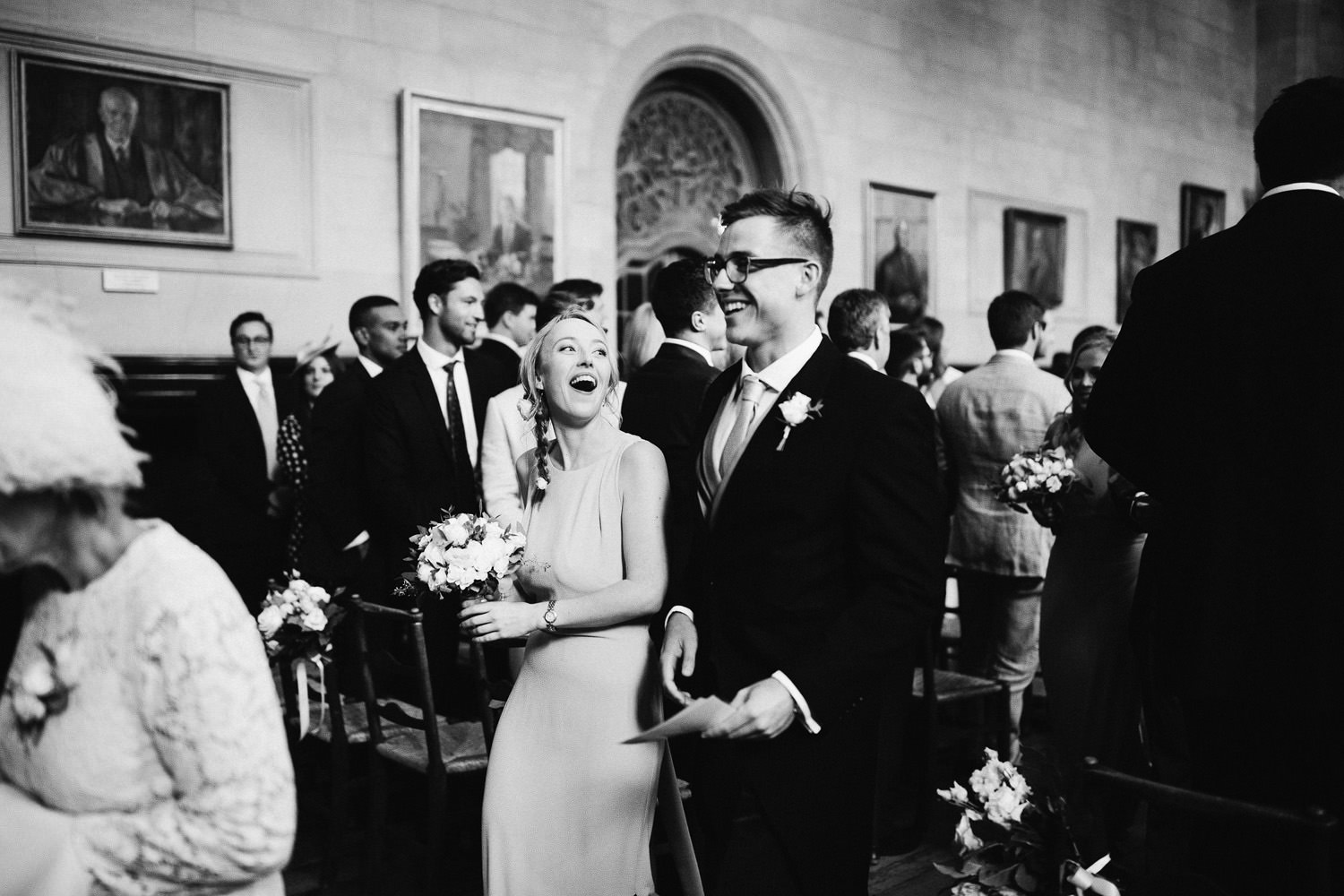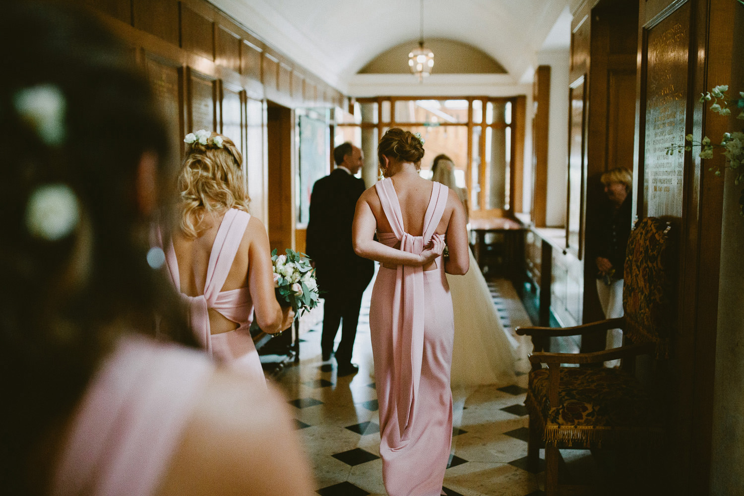 Olivia and Nick are to say the least very fun people to be around. You could witness this in the way they interacted with their friends and family. A huge warm circle of friendship enveloped them during the day and from just spending a small amount of time with them you could easily see why. I’d want to be their buddy and it was this charisma that made the photography a total pleasure.  As a regular Oxford wedding photographer this wedding in particular was one where you really felt connected to the town, we walked through the streets in the morning with the guys to the pub and Olivia was getting ready at her parents home near the centre. And the venue itself Rhodes House is an incredible building designed in the style os Cotswolds mansion and its sandy stones making it a perfect fit for Oxford.